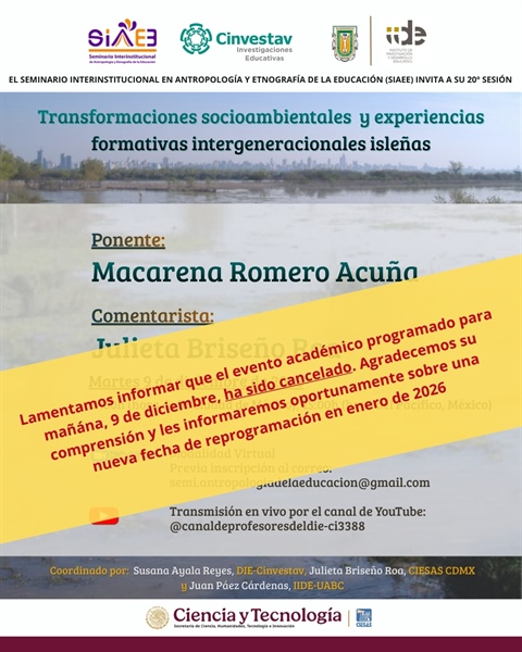 Previa inscripción al correo: semi.antropologiadelaeducacion@gmail.com