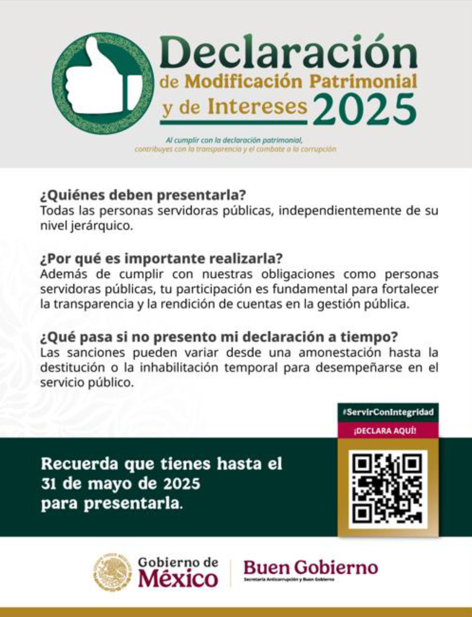 Al cumplir con la declaración patrimonial, contribuyes con la transparencia y el combate a la corrupción.