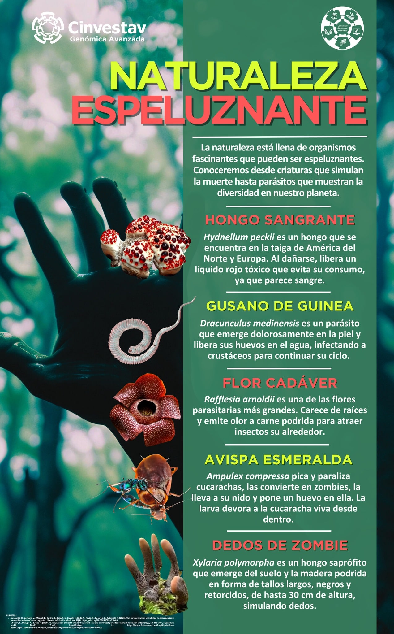 La vida en nuestro planeta ha evolucionado de formas que parecen sacadas de una película de terror. Desde hongos que "sangran" y lucen como dedos esqueléticos emergiendo del suelo, hasta avispas que convierten a sus presas en zombis vivientes.