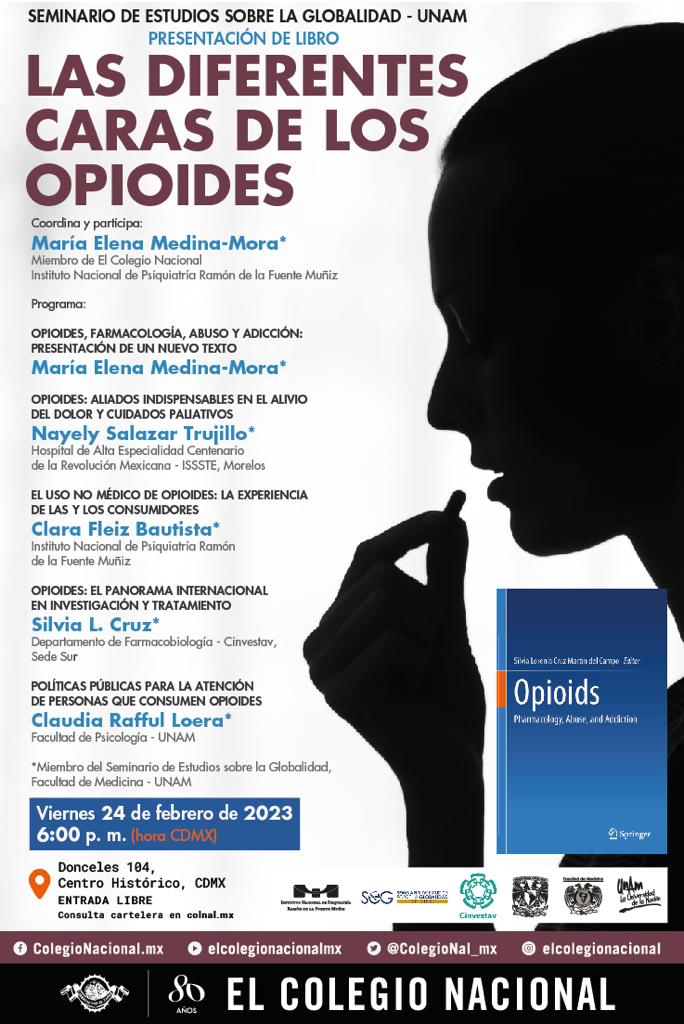 En la presentación del libro "Las Diferentes Caras de los Opioides" que se llevara acabo en El Colegio Nacional participara la Dra. Silvia L. Cruz, investigadora del departamento de Farmacobiología.