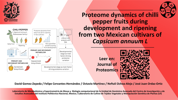 Te invitamos a leer el artículo "Proteome dynamics of chilli pepper fruits during development and ripening from two Mexican cultivars of Capsicum annuum L" publicado en Journal of Proteomics, a cargo del investigador Cinvestav Dr. José Juan Ordaz Ortiz y su equipo de trabajo de la UGA.