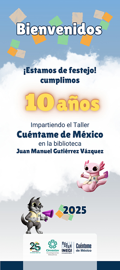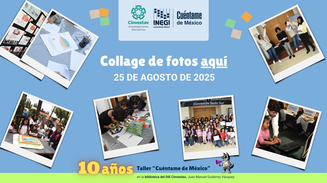 El pasado 25 de agosto del presente, se llevó a cabo la décima edición del Taller Cuéntame de México, una propuesta que surge a partir de un convenio de colaboración entre el Departamento de Investigaciones Educativas (DIE) del Cinvestav y el Instituto Nacional de Estadística Geografía e Informática (INEGI). El taller está dirigido especialmente a la comunidad infantil de nuestra sede y en el cual se realizan diversas actividades que tienen por objetivo sensibilizar y dar a conocer, desde temprana edad, la información estadística y geográfica con la que cuenta el INEGI a partir del uso de herramientas interactivas y amenas diseñadas para el uso y formación de la población infantil. Actividades que tiene que ver con el conocimiento geográfico del territorio nacional, así como aspectos básicos sobre la población mexicana, su economía y el gobierno.
