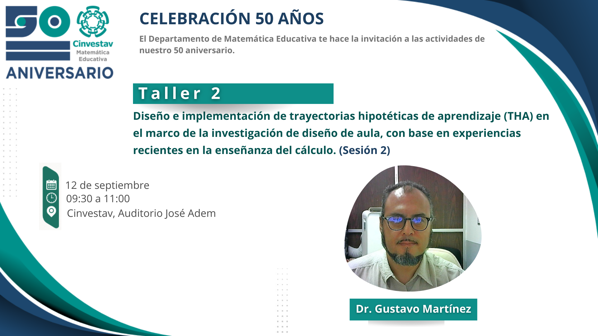 Marco Antonio Ortega García / lunes, 4 de agosto de 2025 / Categorías: Matematica Educativa Taller 2: Diseño e implementación de trayectorias hipotéticas de aprendizaje (THA) en el marco de la investigación de diseño de aula, con base en experiencias recientes en la enseñanza del cálculo Dr. Gustavo Martinez. (Sesión 2) Fecha: 12 de septiembre Hora: 09:30 a 11:00 Lugar: Cinvestav, Auditorio José Adem Invitado: Dr. Gustavo Martinez. Print 466 Califica este artículo: Sin calificación Please login or register to post comments.