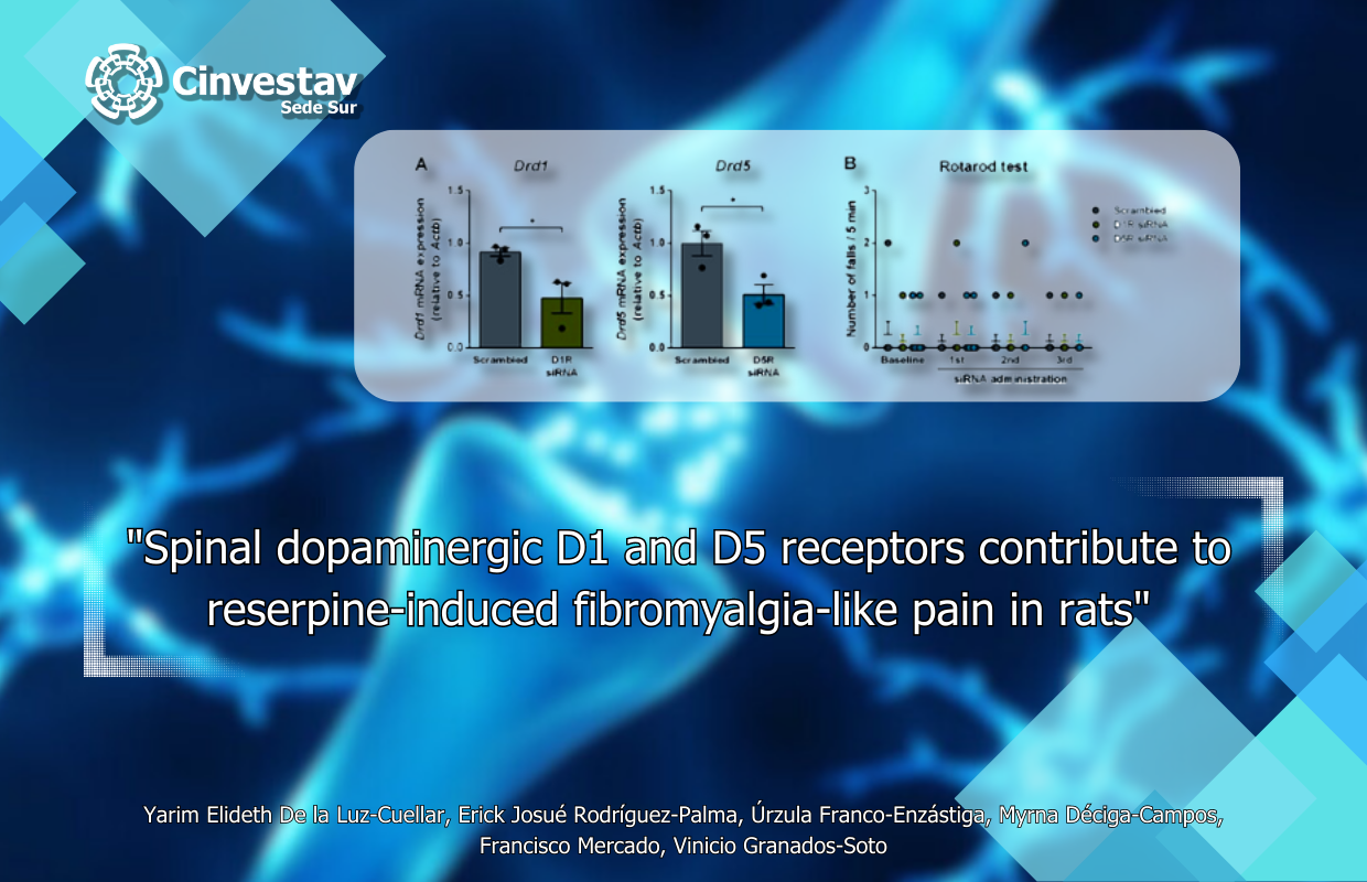 Invitamos a leer el artículo: “Spinal dopaminergic D1 and D5 receptors contribute to reserpine-induced fibromyalgia-like pain in rats”, en la que colaboró el Doctor Vinicio Granados Soto, Investigador de Cinvestav Sede Sur