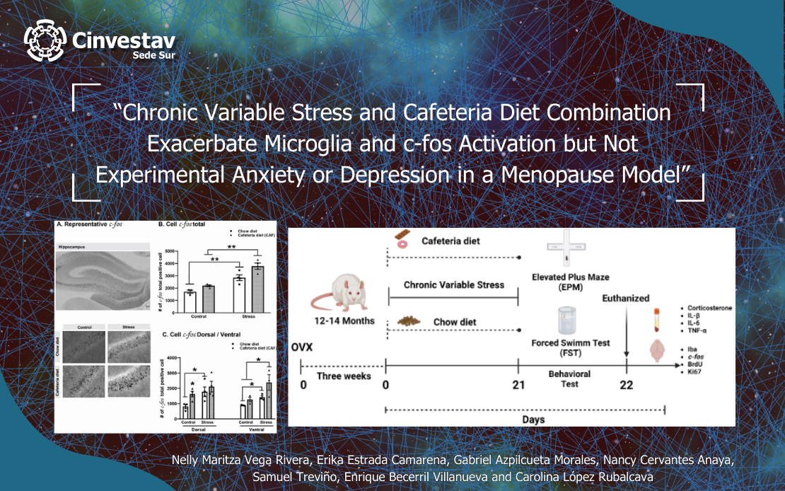 Invitamos a leer el artículo: " Chronic Variable Stress and Cafeteria Diet Combination Exacerbate Microglia and c-fos Activation but Not Experimental Anxiety or Depression in a Menopause Model", realizado por la Dra. Carolina López Rubalcava, Investigadora de Cinvestav Sede Sur