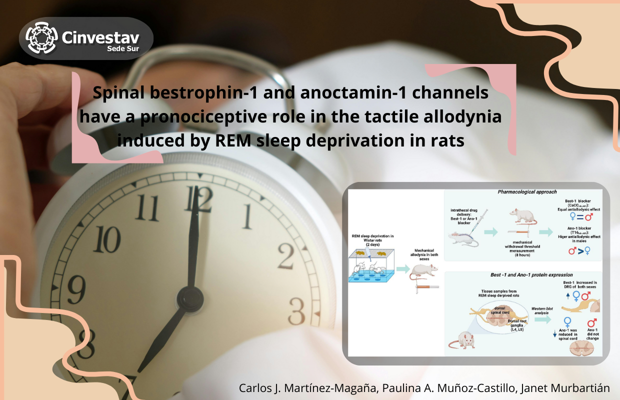 Invitamos a leer el artículo: " Spinal bestrophin-1 and anoctamin-1 channels have a pronociceptive role in the tactile allodynia induced by REM sleep deprivation in rats", realizado por el Dra. Janet Murbatián, Investigadora de Cinvestav Sede Sur