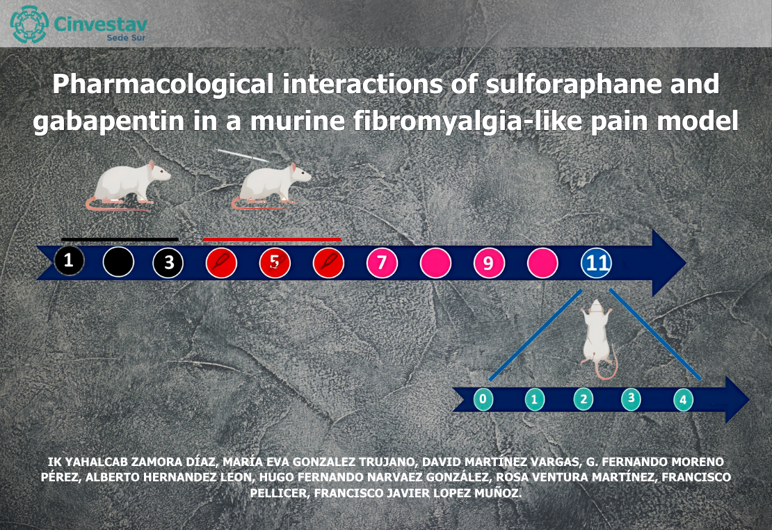 Te invitamos a leer el artículo: "Pharmacological interactions of sulforaphane and gabapentin in a murine fibromyalgia-like pain model", realizado por el Dr. Francisco Javier López Muñoz, quien fue investigador del departamento de Farmacobiología en la Sede Sur del Cinvestav.