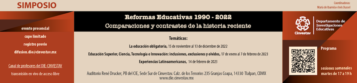 Modera: Ariadna Acevedo (DIE Cinvestav). Ponentes: María de Ibarrola (DIE Cinvestav);  Pedro Flores Crespo (UAQro); Carlos Ornelas (UAM-X ).  Comentarista: Alma Maldonado (DIE Cinvestav)