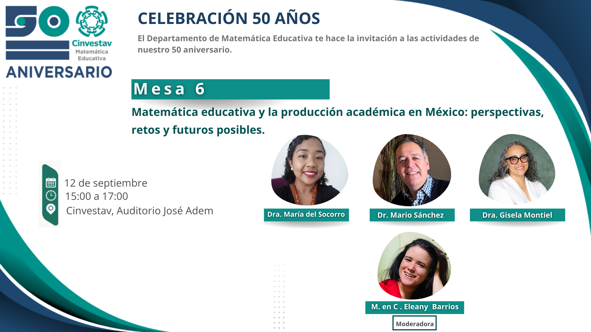 Mesa 6: Matemática educativa y la producción académica en México: perspectivas, retos y futuros posibles.